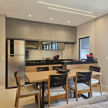 Esse apartamento se destaca pela elegância e pela combinação de materiais, que fez toda a diferença no resultado final.