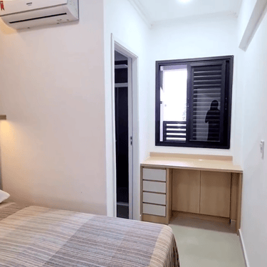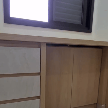 Fizemos também uma área para home office com esse armário escondendo toda a afiação e deixando seu ambiente mais leve e bonito.