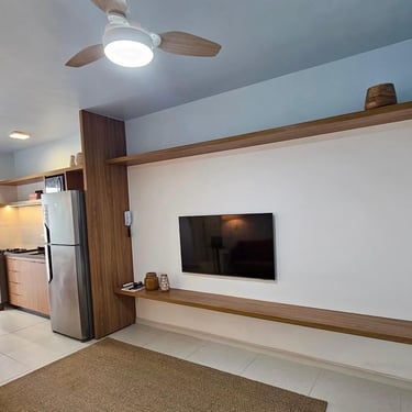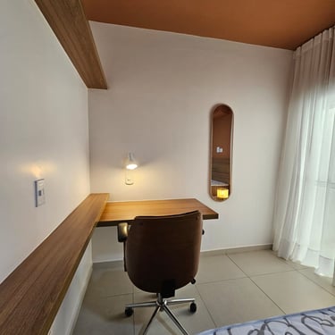 Estre projeto foi inspirado pela natureza. Por isso, usamos as cores naturais tanto nas tintas quanto na marcenaria.